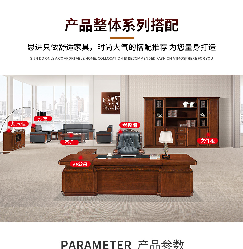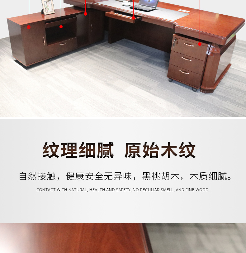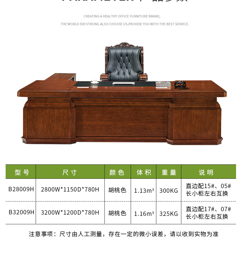 胡桃色實(shí)木油漆大班臺(tái)B16015H