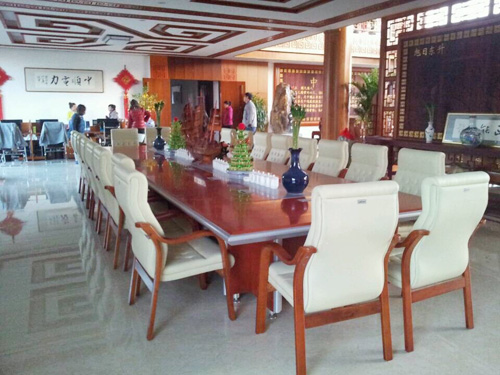 采用思進(jìn)家具櫻桃色會(huì)議臺(tái)H6060Y,與天花板顏色相搭配,盡顯大氣端莊