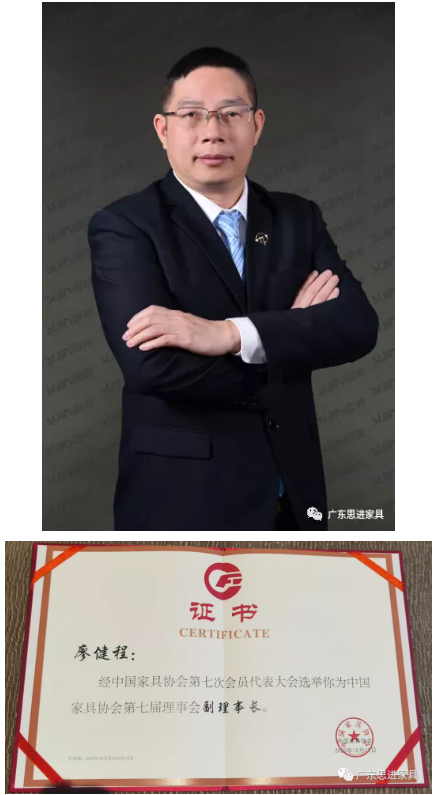 本次大會(huì)上,思進(jìn)家具憑借過硬的品牌實(shí)力,思進(jìn)董事長(zhǎng)兼創(chuàng)始人廖健程先生榮幸當(dāng)選為“中國(guó)家具協(xié)會(huì)副理事長(zhǎng)”,思進(jìn)家具再一次以實(shí)力,印證了其在品牌、產(chǎn)品、服務(wù)等方面的行業(yè)地位和創(chuàng)新精神。