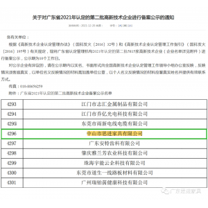 關于對廣東省2021年認定的第二批高新技術企業進行備案公示的通知