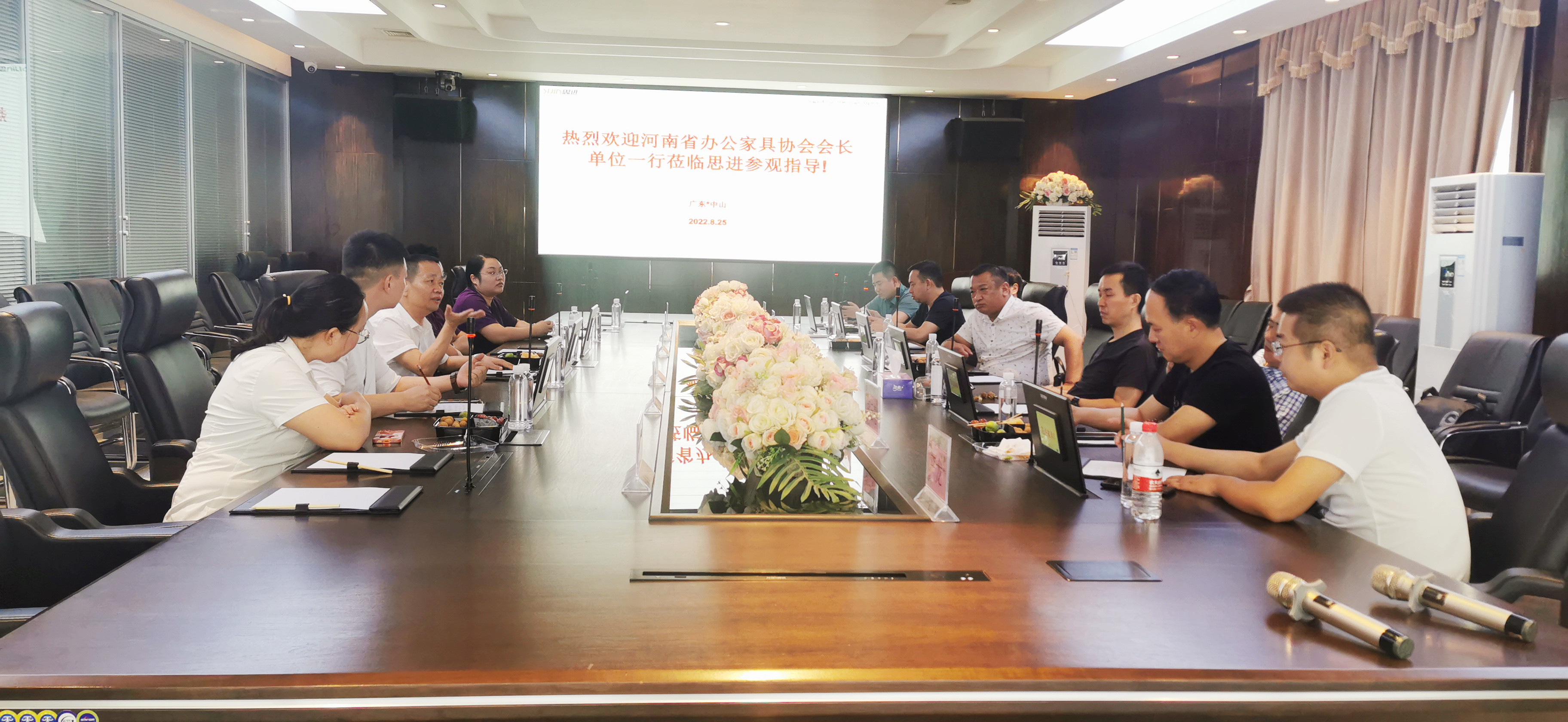 辦公家具協會會長張鋒帶隊的考察團一行到訪思進家具集團,考察團成員有會長張鋒(河南震美辦公空間設計總經理)、秘書長采彥峰(河南美斯頓家俱總經理)、監事長張曉(河南誠業家俱總經理)、常務副會長陳海亮(河南雅寶家俱總經理)、常務副會長胡云亮(洛陽科亞飛家具總經理)、常務副會長王金鋼(河南優美辦公總經理)、副會長嚴龍(河南點晴電子科技總經理)、副秘書長張小遠(鶴山市四方家具總經理)。思進家具集團總裁戴金榮出席接待,雙方進行交流洽談。