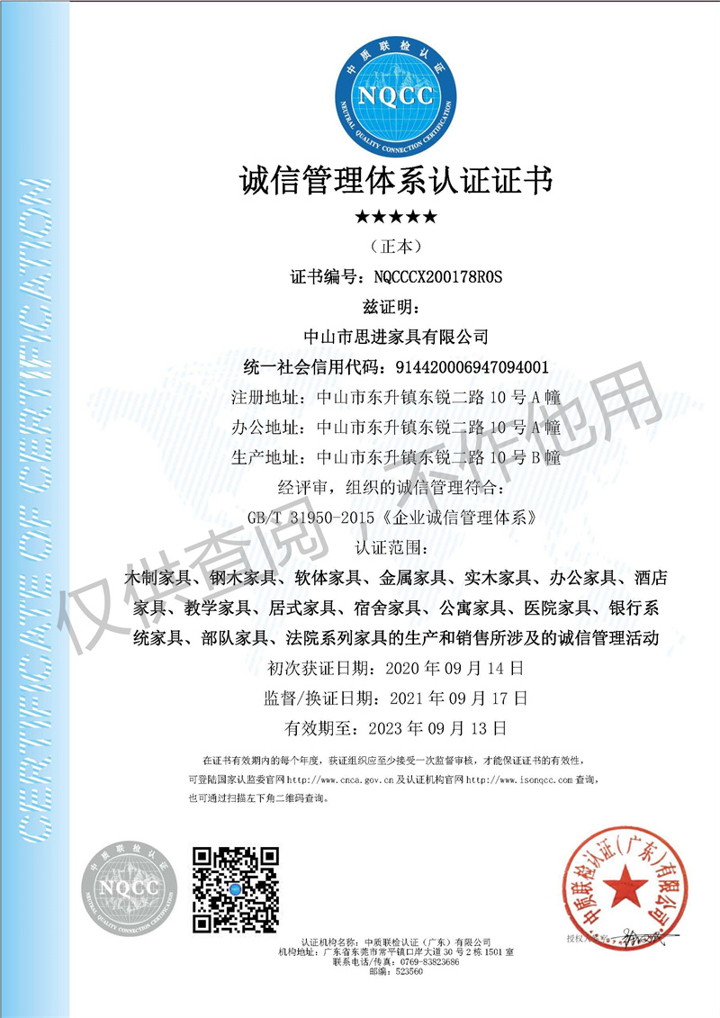 誠信管理體系認證證書